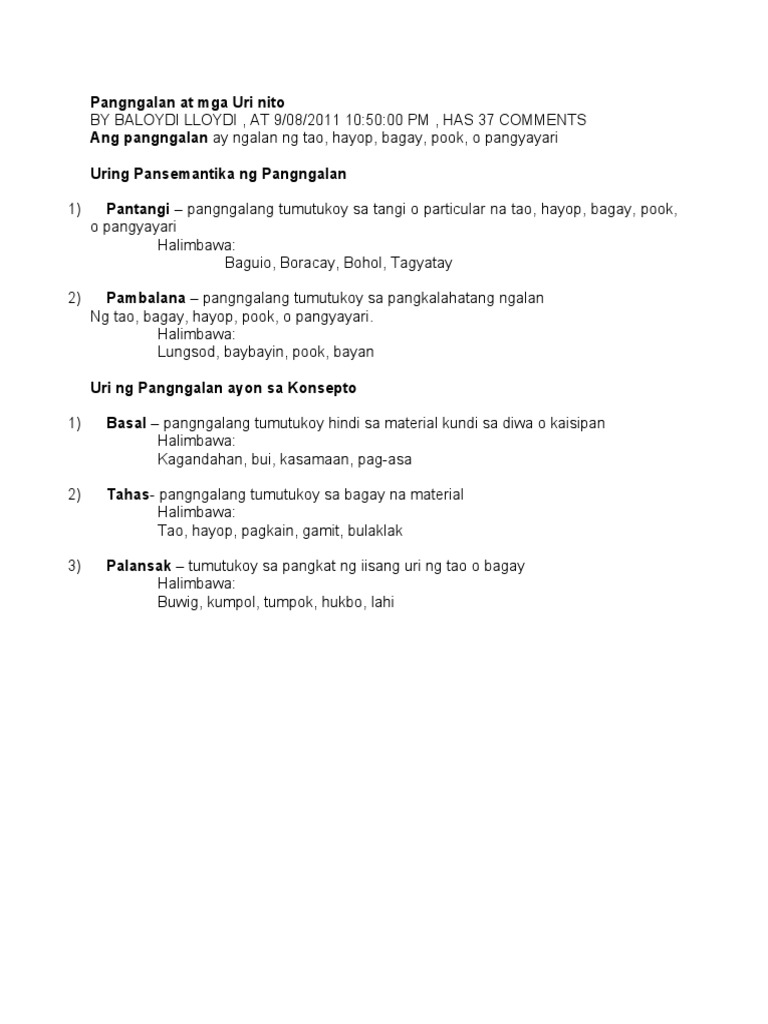 Pangngalan At Mga Uri Nito Pdf
