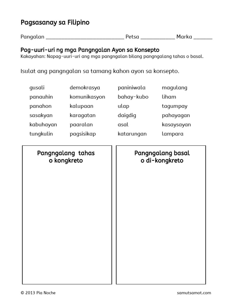 Worksheet Sa Uri Ng Pangngalan Ayon Sa Konsepto Pdf