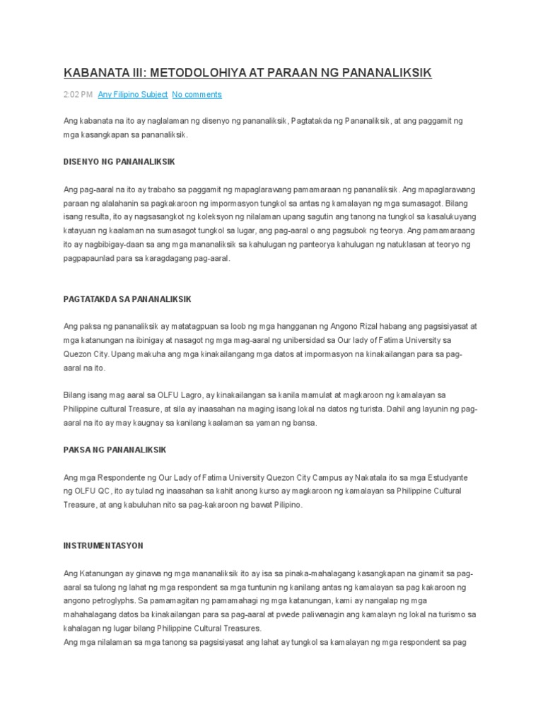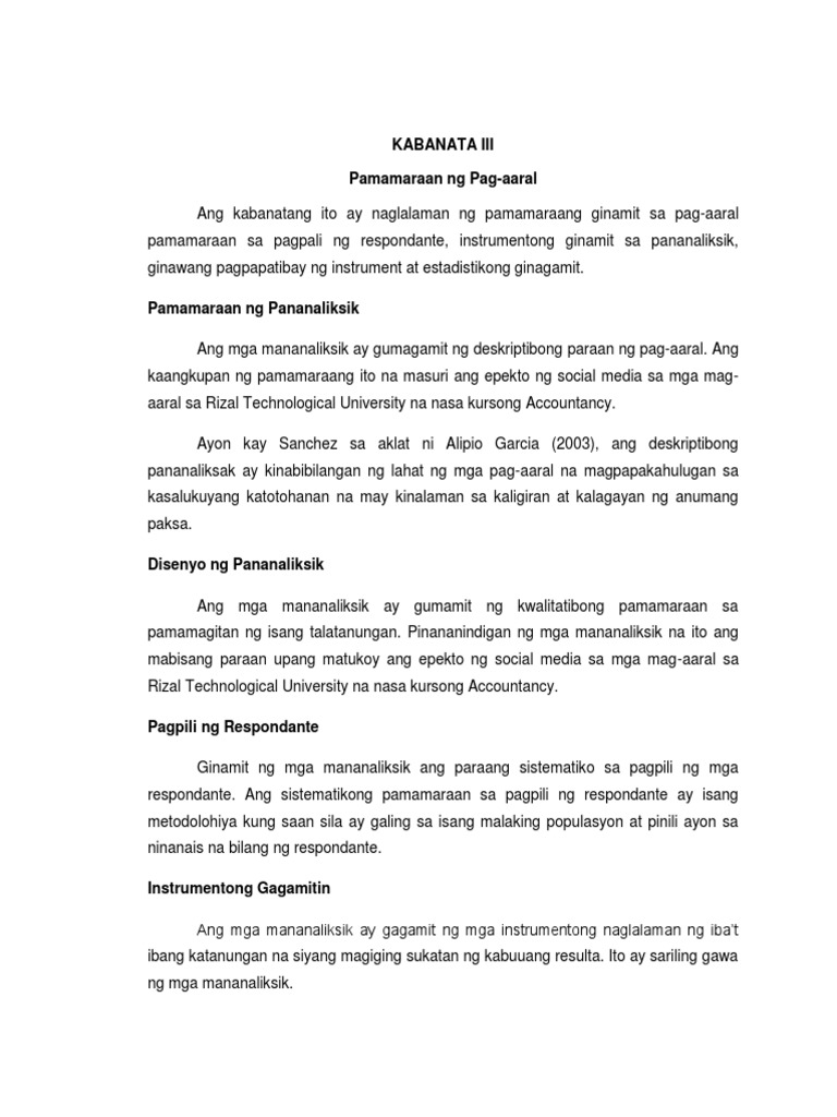 Hindi maiiwasan ang pag-code switch dahil kulang sa katumbas sa wikang Filipino ang iulang mga salita o termino. Ayon sa kaniya ang metodo ng pananaliksik ay tumutukoy sa mga tiyak na teknik ng pagtitipon at pagsusuri ng datos upang makabuo ng mga konklusiyong mapaninindigan. May angkop na pamamaraan o metodolohiya 4.
