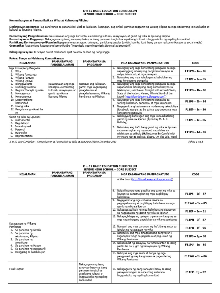 Shs Core Komunikasyon At Pananaliksik Sa Wika At Kulturang Pilipino Cg Pdf