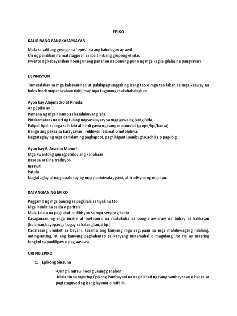 Ano Ang Epiko Ayon Sa Mga Manunulat